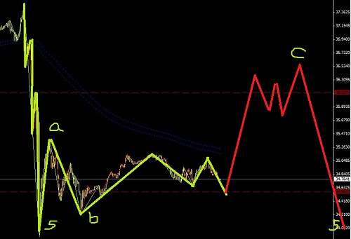 從波浪理論圖解看黃金正處于B浪下跌之中,后面還有一個C浪上漲,這個C浪也能有500多點的行情,白銀和黃金的走勢稍有不同,很明顯白銀相對黃金要弱一些,慢一些,眼前離做空還有點距離,目前先做多吧!