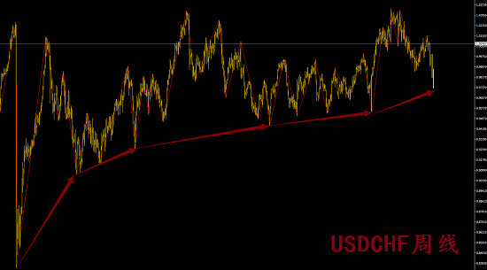 【周線】USDCHF周線多頭趨勢+EURUSD周線空頭趨勢,其中歐美的空頭趨勢比美瑞更好;